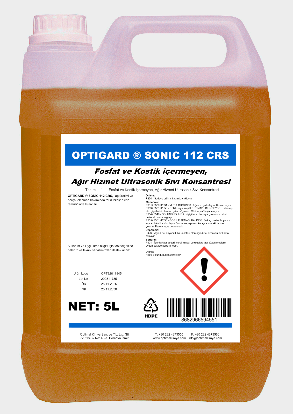 OPTIGARD ® SONIC 112 CRS, metallerin korozyonunu önlemek için korozyon inhibitörleri içeren üstün ve güçlü bir alkali temizleyicidir.