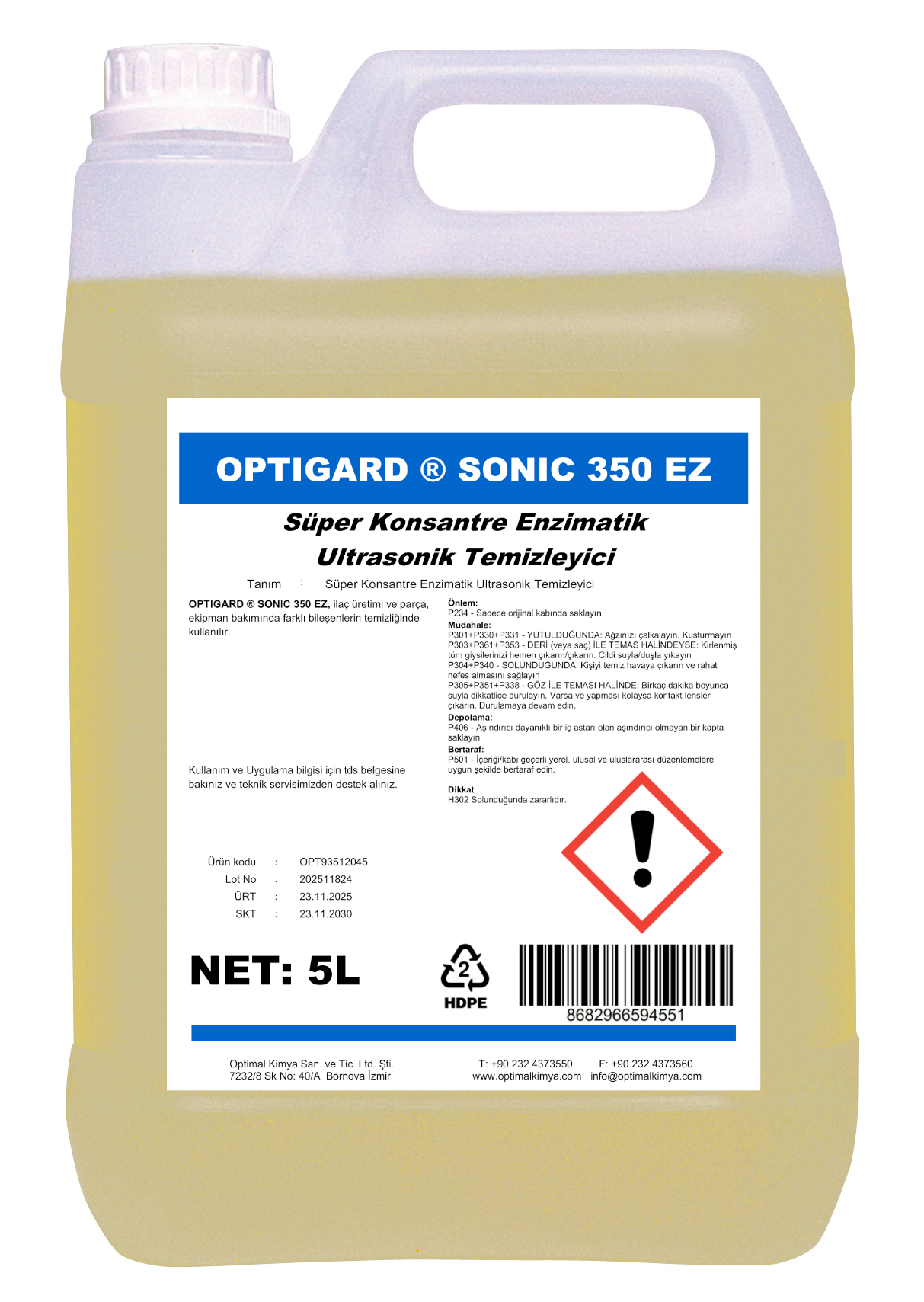 OPTIGARD ® SONIC 350 EZ, metallerin korozyonunu önlemek için korozyon inhibitörleri içeren üstün ve güçlü bir alkali temizleyicidir. Konsantre, anyonik deterjan veya manuel ve ultrasonik temizlik. Kalıntı bırakmadan güvenilir sonuçlar elde etmek için serbest durulama.